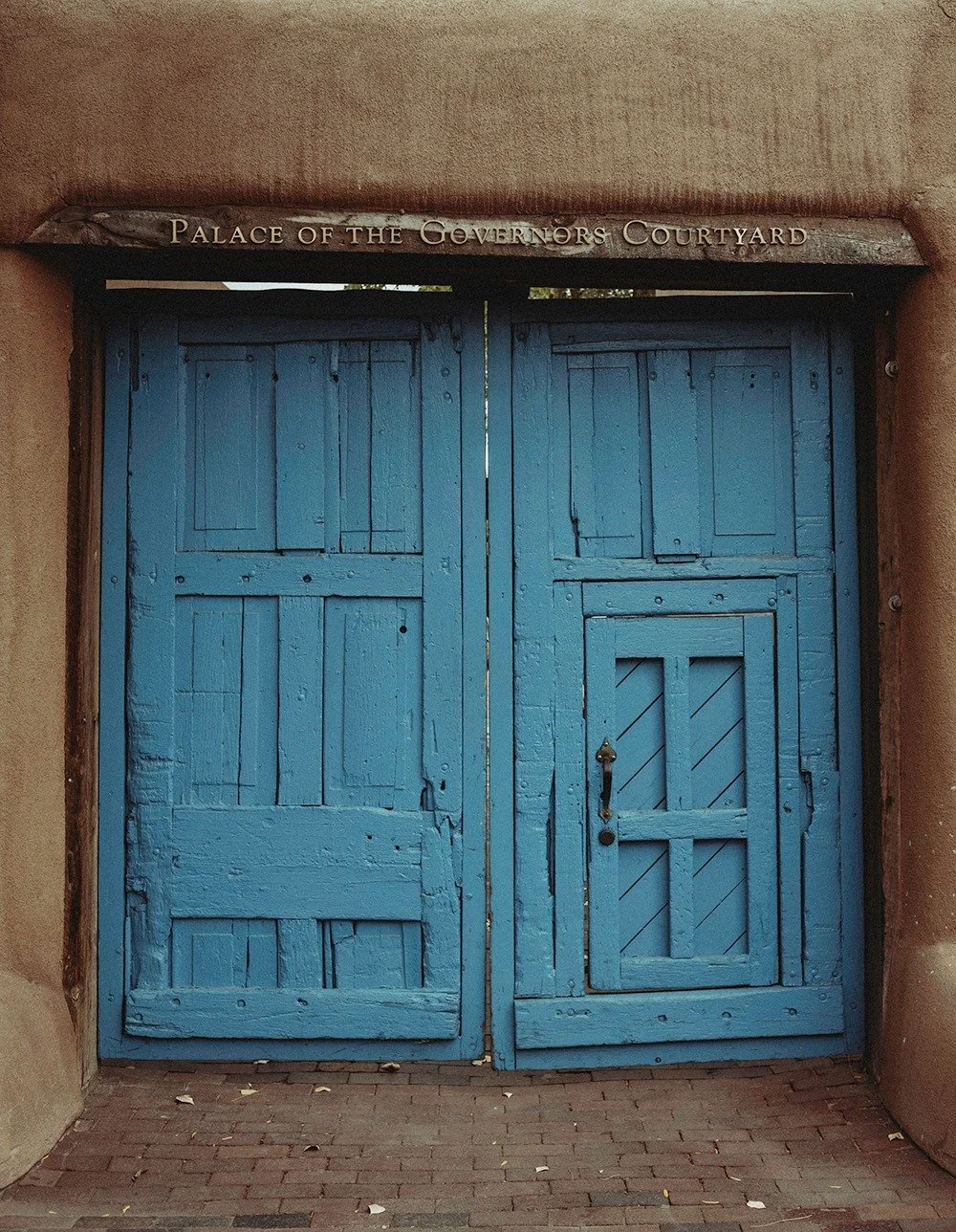 View fullsize Historic charm meets vibrant color — the striking blue doors of the Palace of the Governors Courtyard.