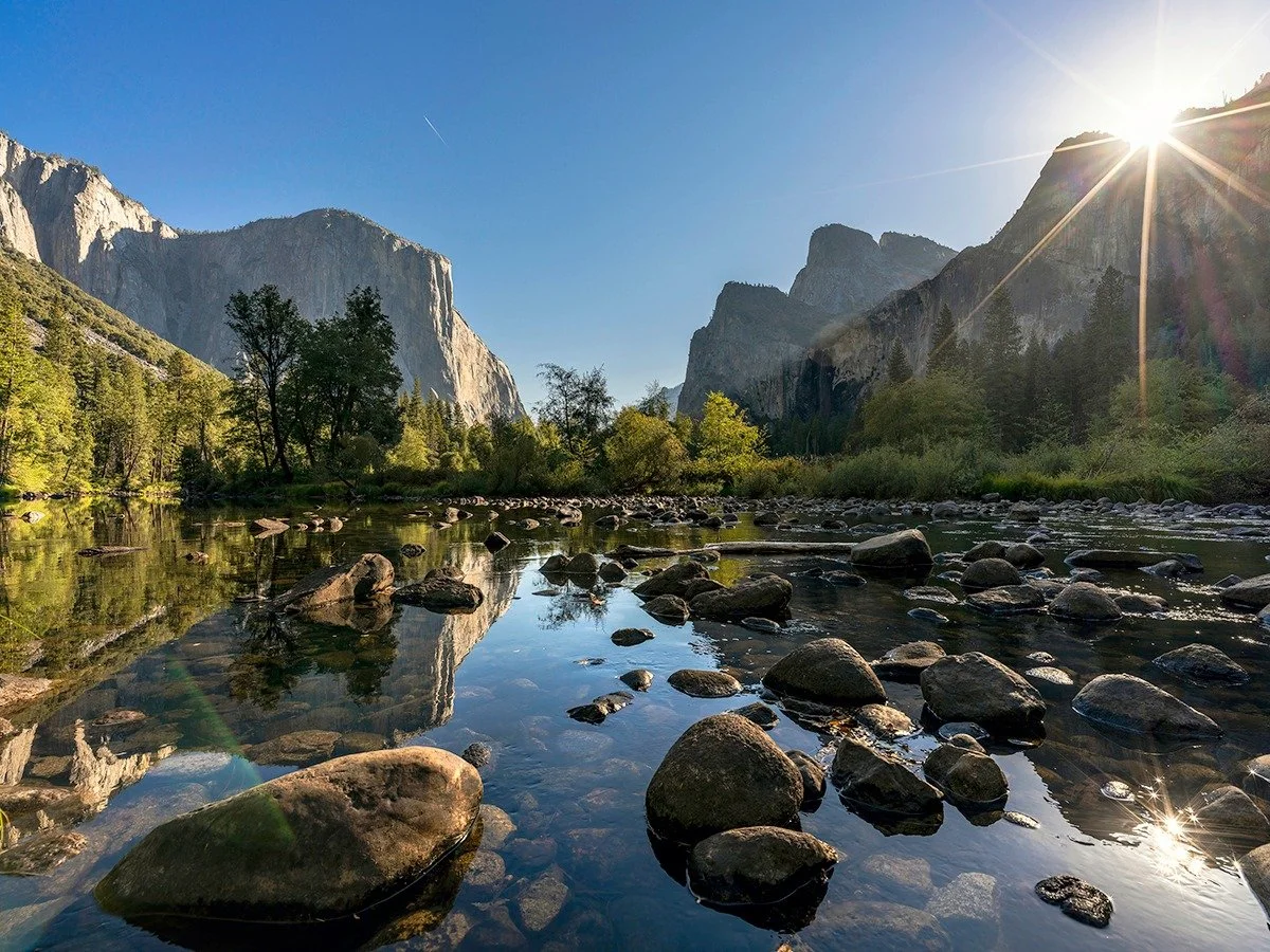 View fullsize Morning light breaks over Yosemite Valley, illuminating El Capitan and the Merced River in a timeless scene of natural beauty.