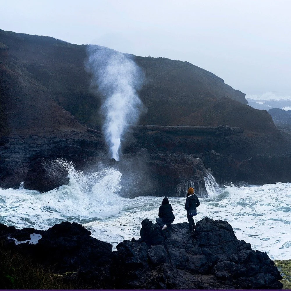 View fullsize Nature’s raw power on display at Thor’s Well — waves crash and surge through volcanic rock, creating a dramatic coastal spectacle on the Oregon Coast.