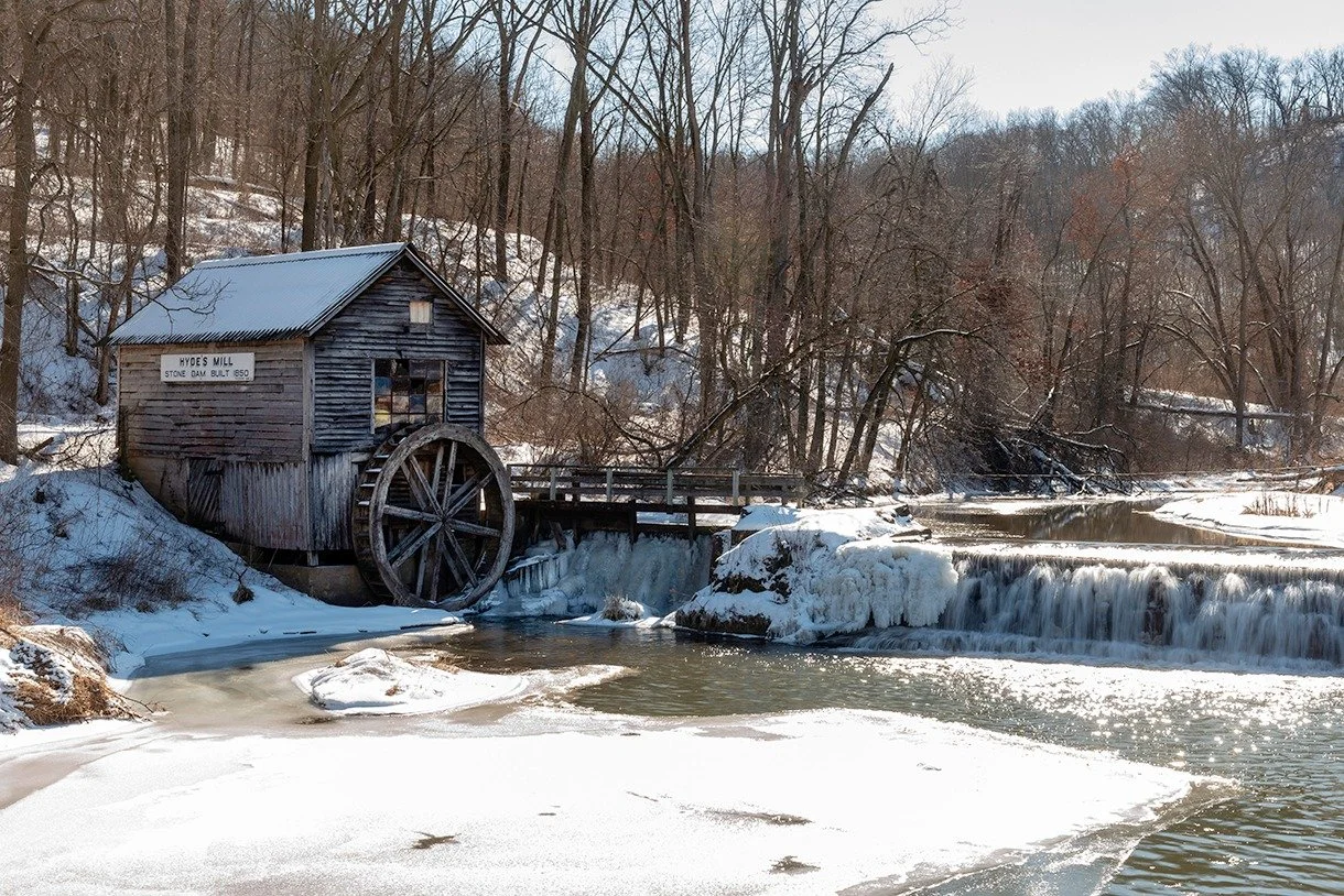 View fullsize Not looking forward to this kind of weather.....Hyde's Mill in Ridgeway, Wisconsin – a historic site featuring a stone dam built in 1850 and a classic wooden waterwheel......#HydesMill #RidgewayWisconsin
