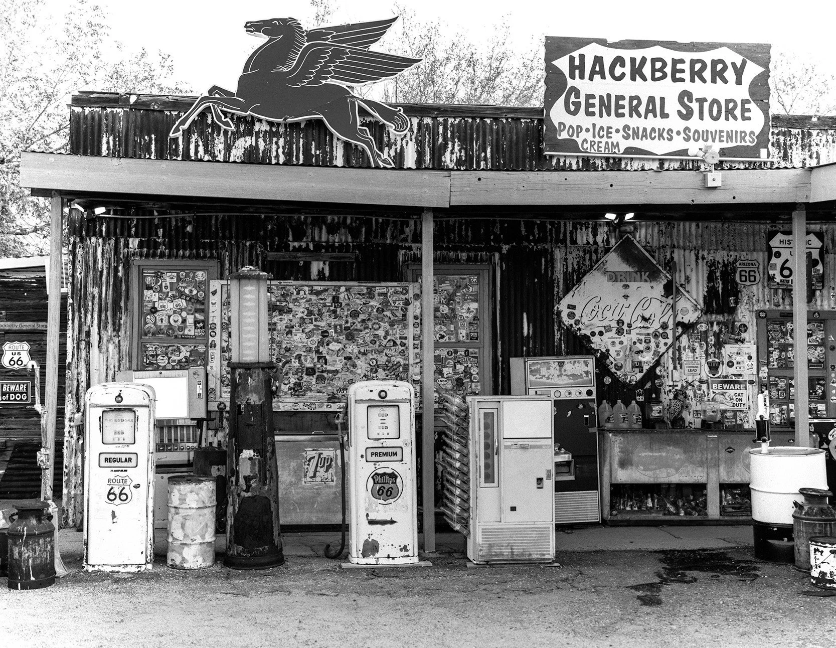View fullsize Step back in time on historic Route 66 at the Hackberry General Store — a classic symbol of America’s open road, captured in timeless black and white.